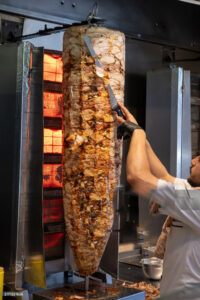 - Yaprak Döner: Düsseldorf Neuss’da, Köln merkez ve Ehrenfeld ve Nippes semtlerinde faaliyet gösteren bazı Türk aile işletmeleri, kuyruk yağıyla marine edilmiş, elle dizilmiş yaprak döner sunuyor. Tuz oranı yüksek olsa da genele göre Lezzet profili derin, doku ise etin doğal liflerini koruyacak seviyede.